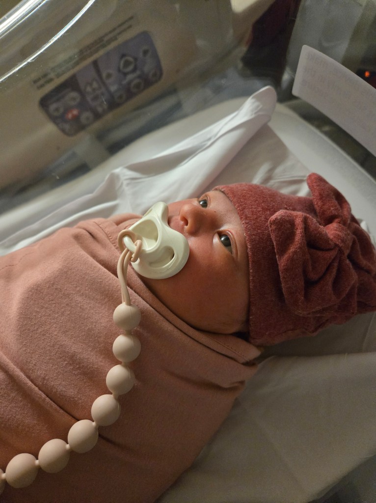 By the time I saw Lyla in the nursery, she was breathing fine and looking around like she already had questions for the world. Soon, they brought her back to the room and placed her directly into Mika’s arms.
